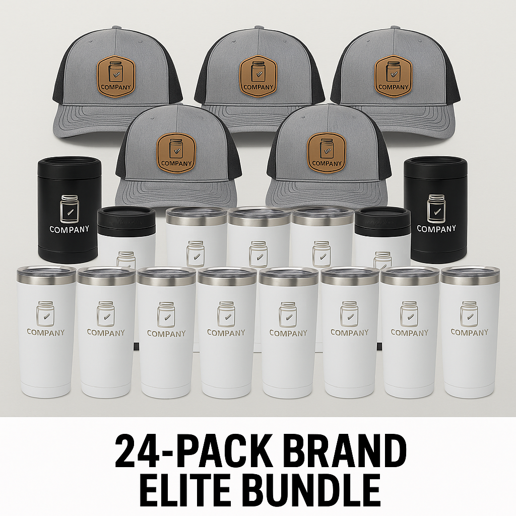 Looking to launch your brand, reward your team, or make a bold first impression? Our 24-Pack Business Pro Bundle is the perfect starter kit for small businesses, creators, and professionals who want to stand out with custom merch.